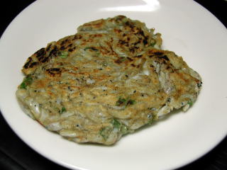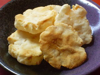 乾物のえびで作るエビせんです。手で生地を伸ばして焼くだけ。とっても簡単においしく作れますよ。 |
